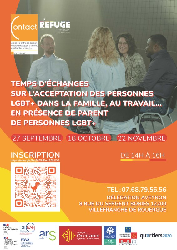 L'association CONTACT Occitanie Dialogue entre les parents, les personnes LGBT+, leurs familles et ami-e-s, en partenariat avec la délégation Le Refuge Aveyron, vous invitent aux :