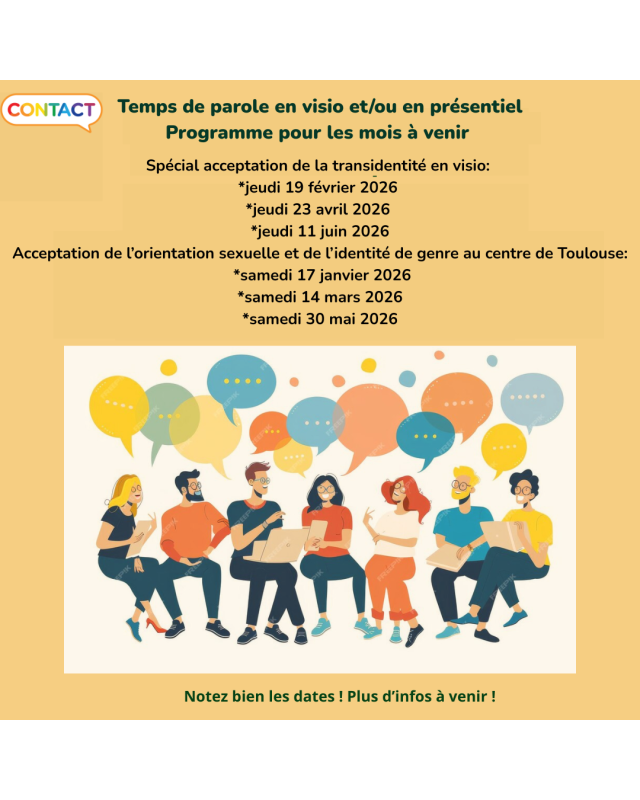 - Les Temps de parole sur l'acceptation de l'orientation sexuelle et de l'identité de genre sont prévus en présentiel à Toulouse: