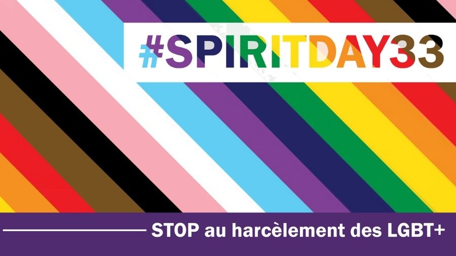 En France, c'est notre association qui a développé le Spirit Day depuis 2016, dans les établissements scolaires de la Gironde principalement. L’homophobie et la transphobie touchent de nombreux élèves à l’École. Porter du violet est donc un moyen pour tout le monde de manifester de manière visible sa solidarité aux jeunes LGBT+ et participer à une campagne anti-discrimination. Le violet correspond à la couleur de la spiritualité du drapeau arc-en-ciel, d'où le terme de "Spirit Day" pour cette action.